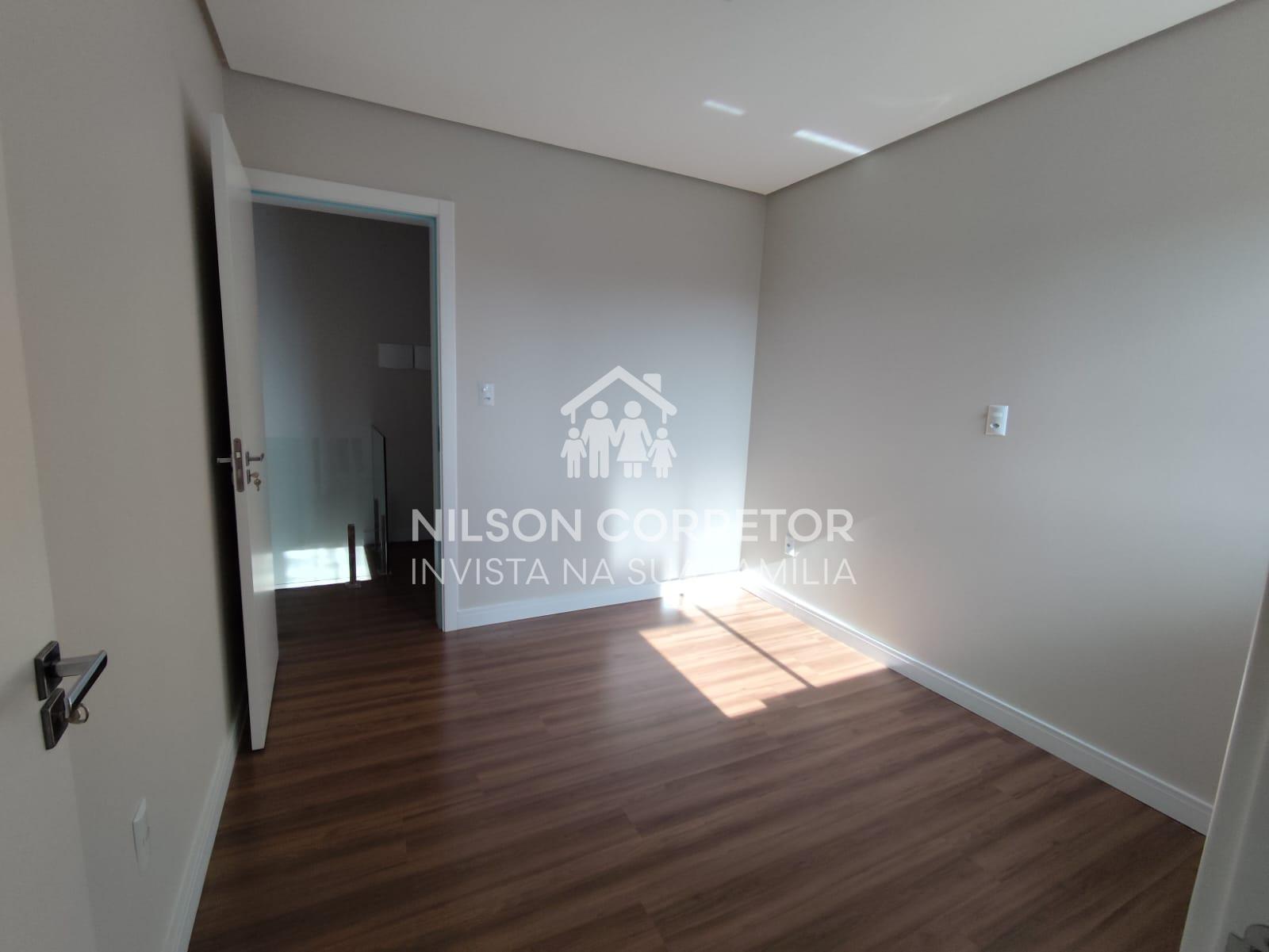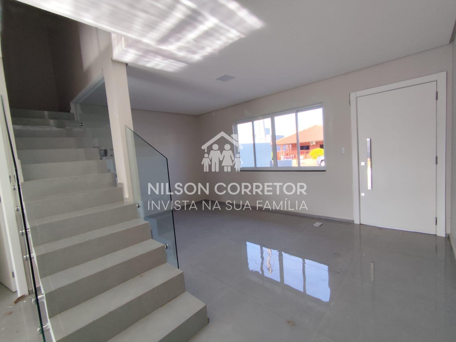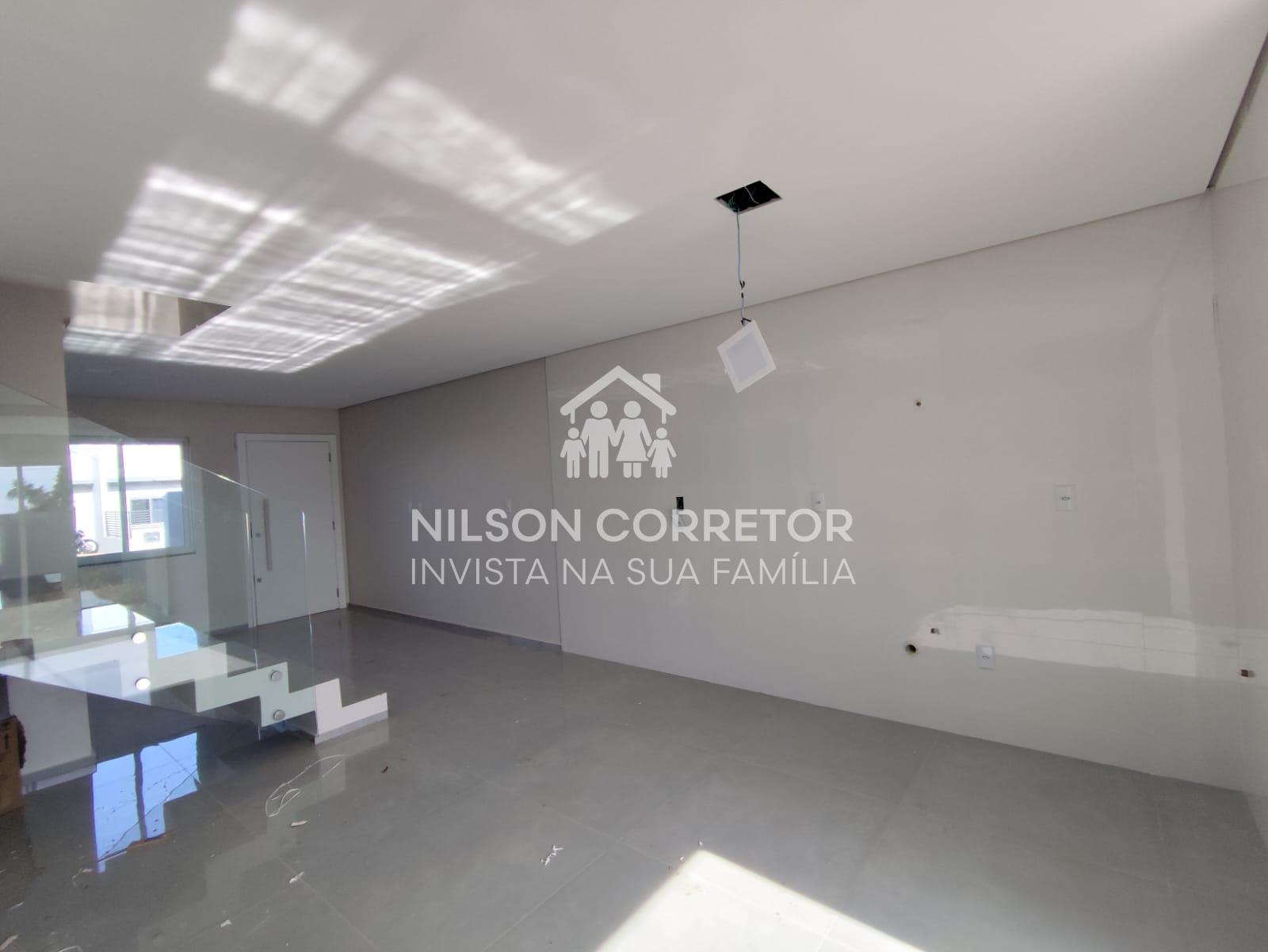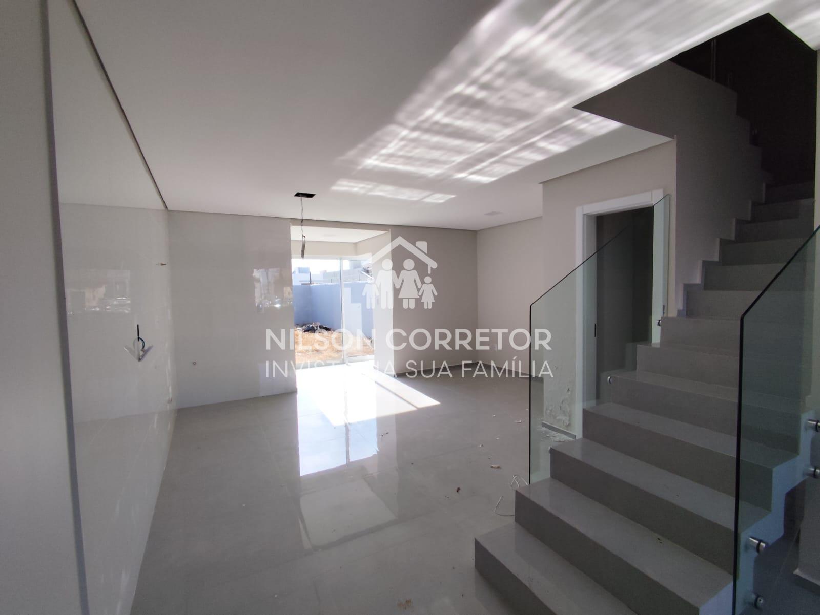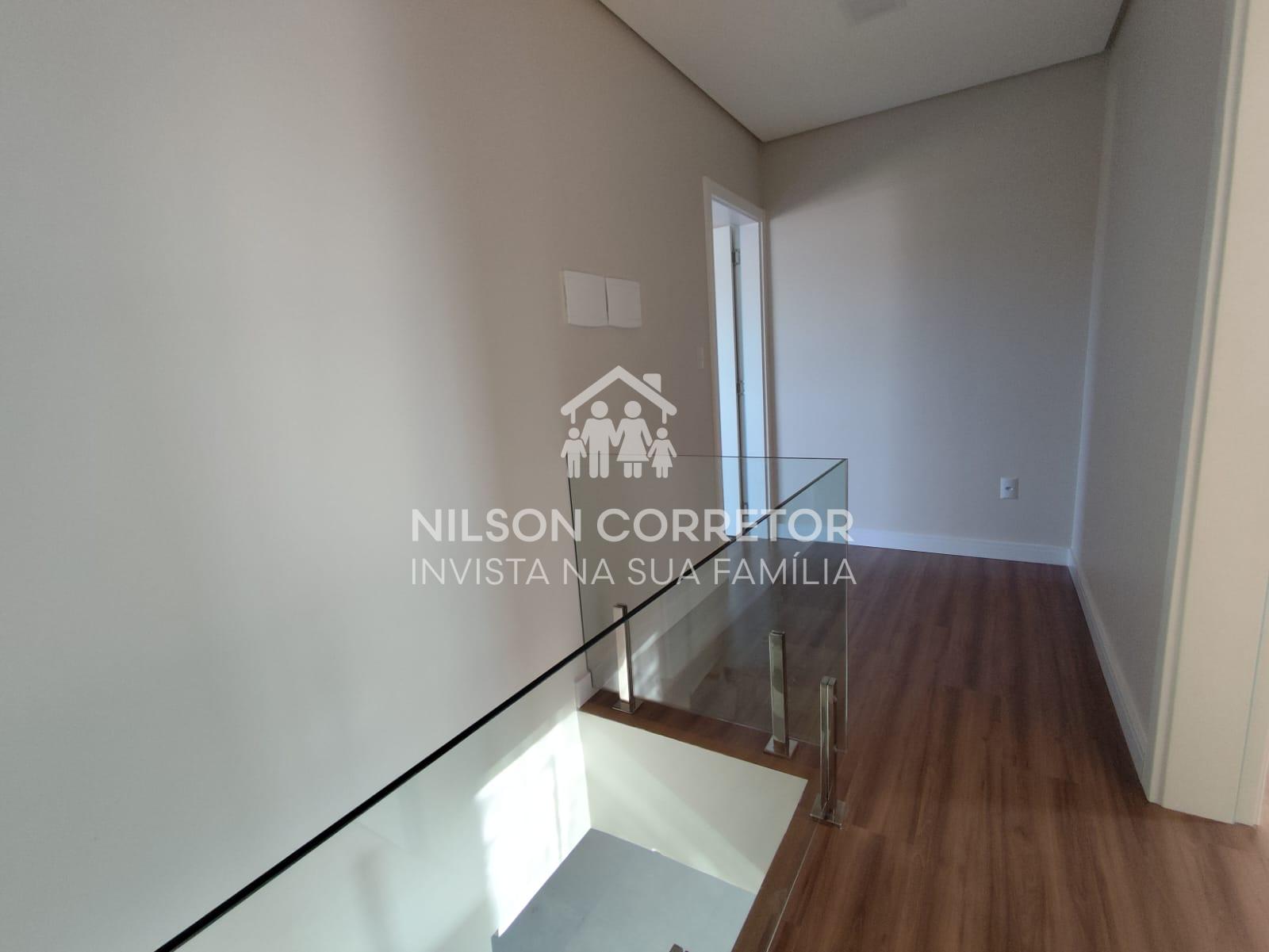 Este belo sobrado contém ambientes espaçosos e bem aproveitado, sendo que no térreo possui, sala de estar e jantar, lavabo, cozinha e área de serviço com acesso para a área externa. Andar superior com uma suíte espaçosa com sacada, mais duas Demi suíte. Terreno na parte dos fundos da residência todo fechado e bem privativo, possuindo um acesso lateral ao sobrado para os fundos do imóvel. Acabamento em gesso, porcelanato e lâmina, janelas com persianas.
