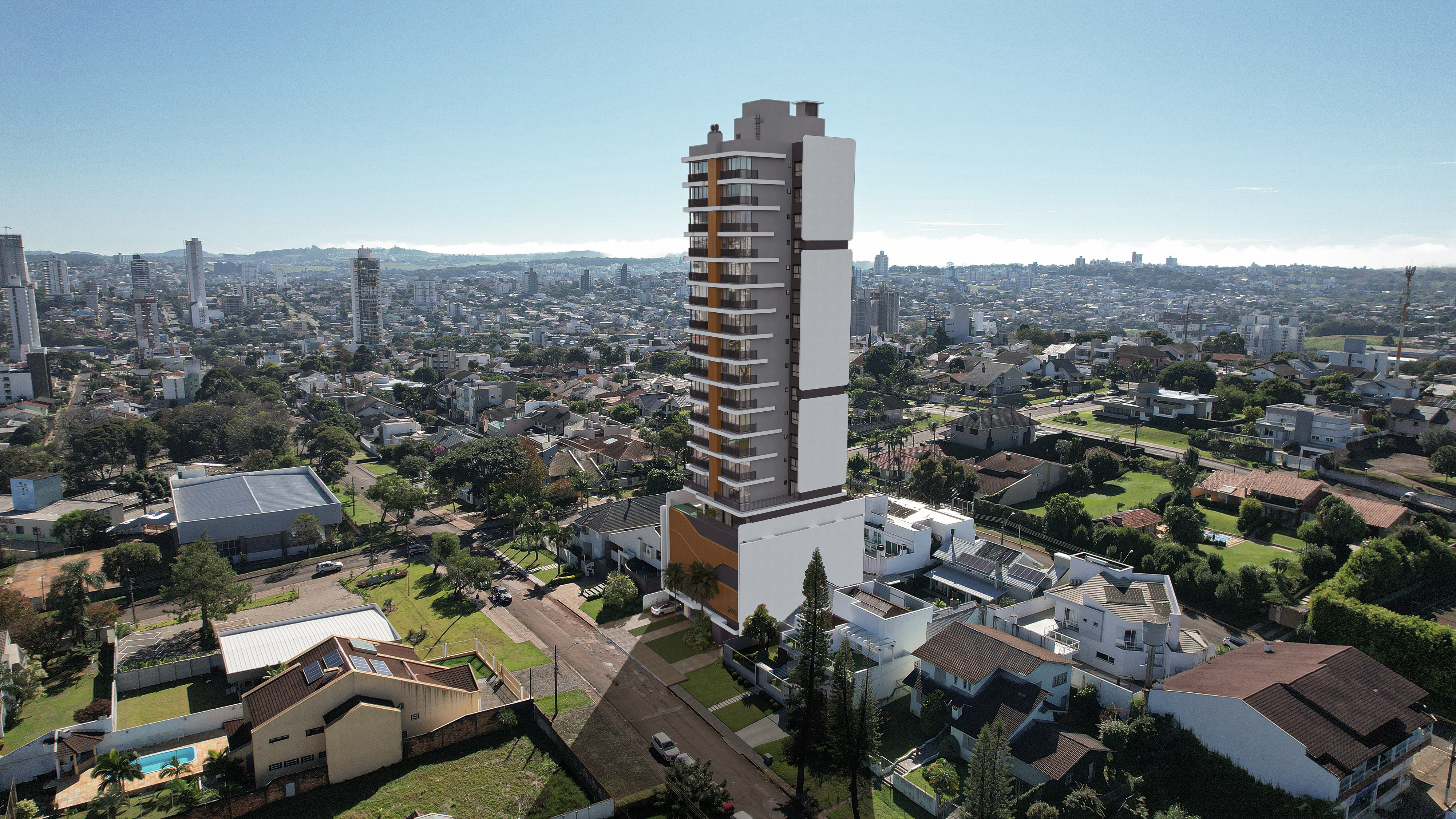 Este empreendimento está sendo construído em uma região nobre de Chapecó, a poucos minutos dos principais comércios e serviços do dia a dia. Rodeados por belas casas, e com o máximo de aproveitamento de suas vistas, são dois tipos de plantas, apartamentos com uma suíte mais duas demi-suites, ou a opção com duas suítes. Área social bem completa, equipadas e mobiliadas, entre elas piscina aquecida, academia, salão de festas e brinquedo teca.